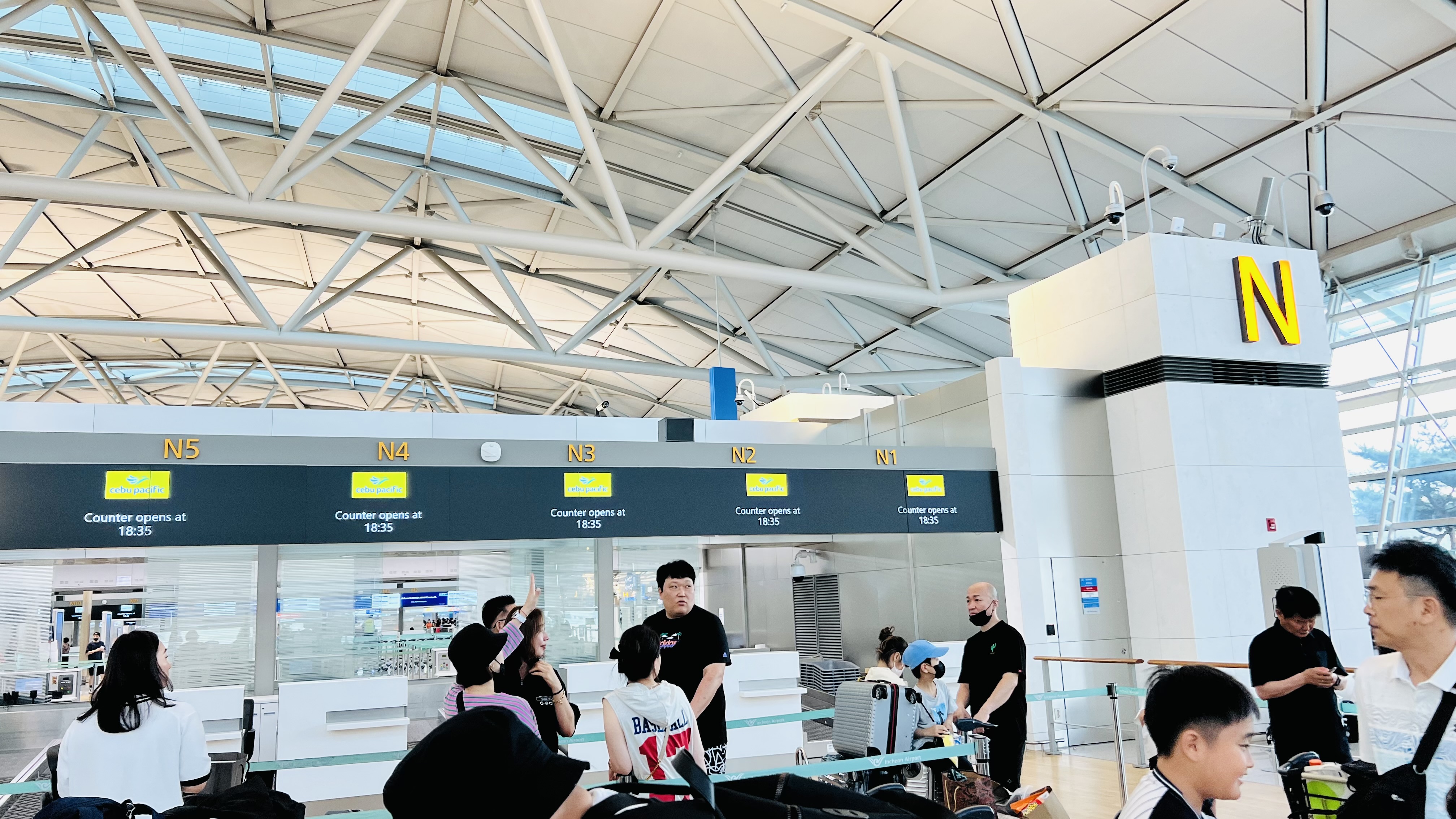공항은 세부퍼시픽이 1터미널 N(거의 맨끝)에 있습니다. 비행기가 작은지 생각보다 사람이 엄청 대기하지는 않았습니다. 18시에 도착하고 얼마 있지 않아 체크인이 가능합니다. E-travel은 지금부터 작성해도 되고, 공항 도착전에 작성해도 됩니다!