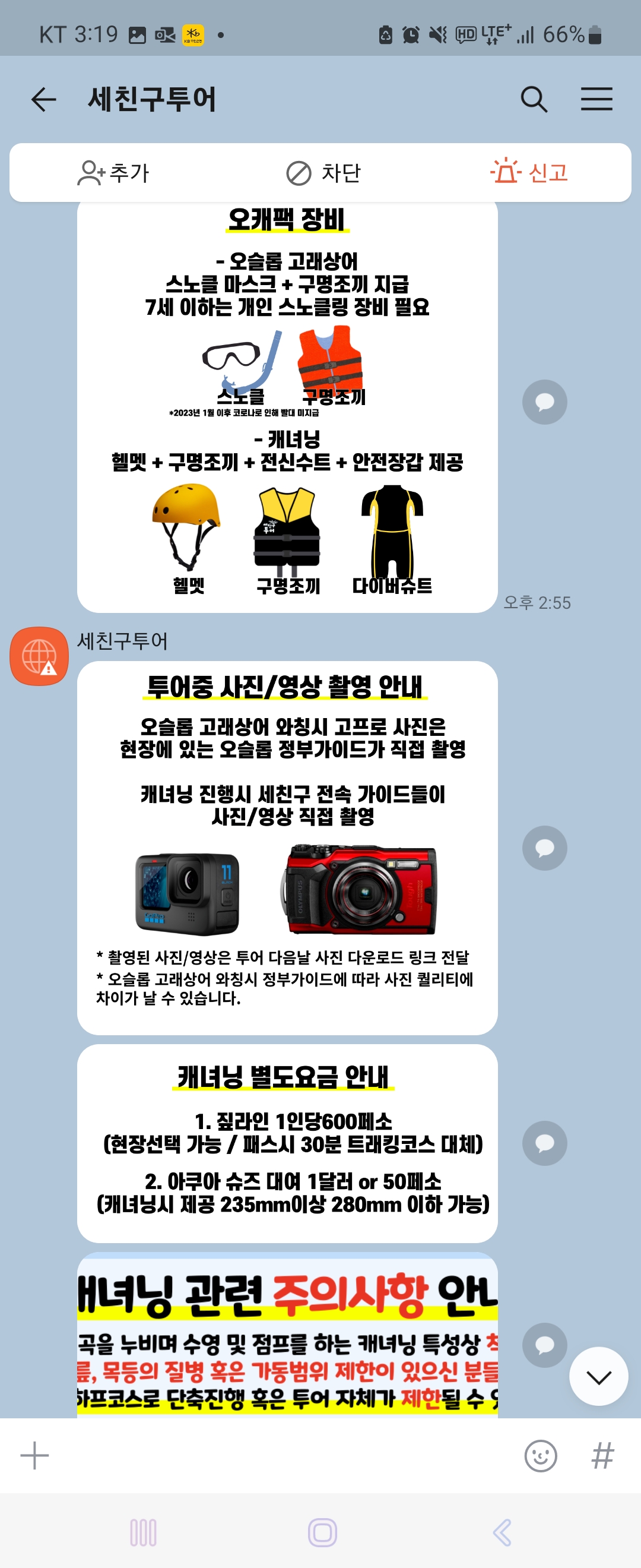팁2 고프로11이라면, 굳이 방수팩 없어도 됩니다. 멀쩡해요! 순정상태로 가지고 갔는데 문제 없었습니다. 캐녀닝 모두. 핸드폰은 불가.