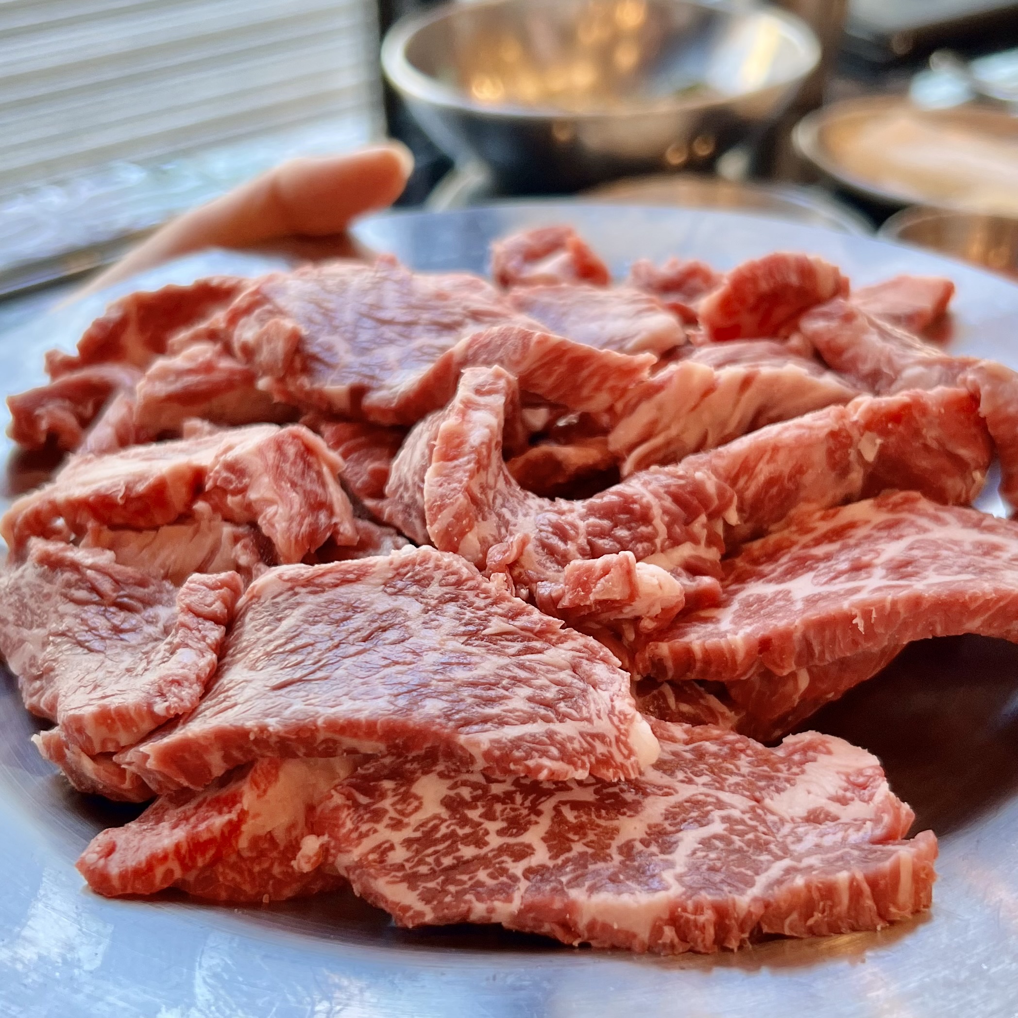 이게 무슨일인지 엄청나게 사람들이 줄 서 있었다. 기다리면서까지 먹기는 싫어서 다른 곳 서칭하다가 고기는 한번 먹어줘야 할 거 같다는 의견에 갑자기 가게 된 근처 소고기집! 기대 안 했는데 맛있어서 리뷰한다.