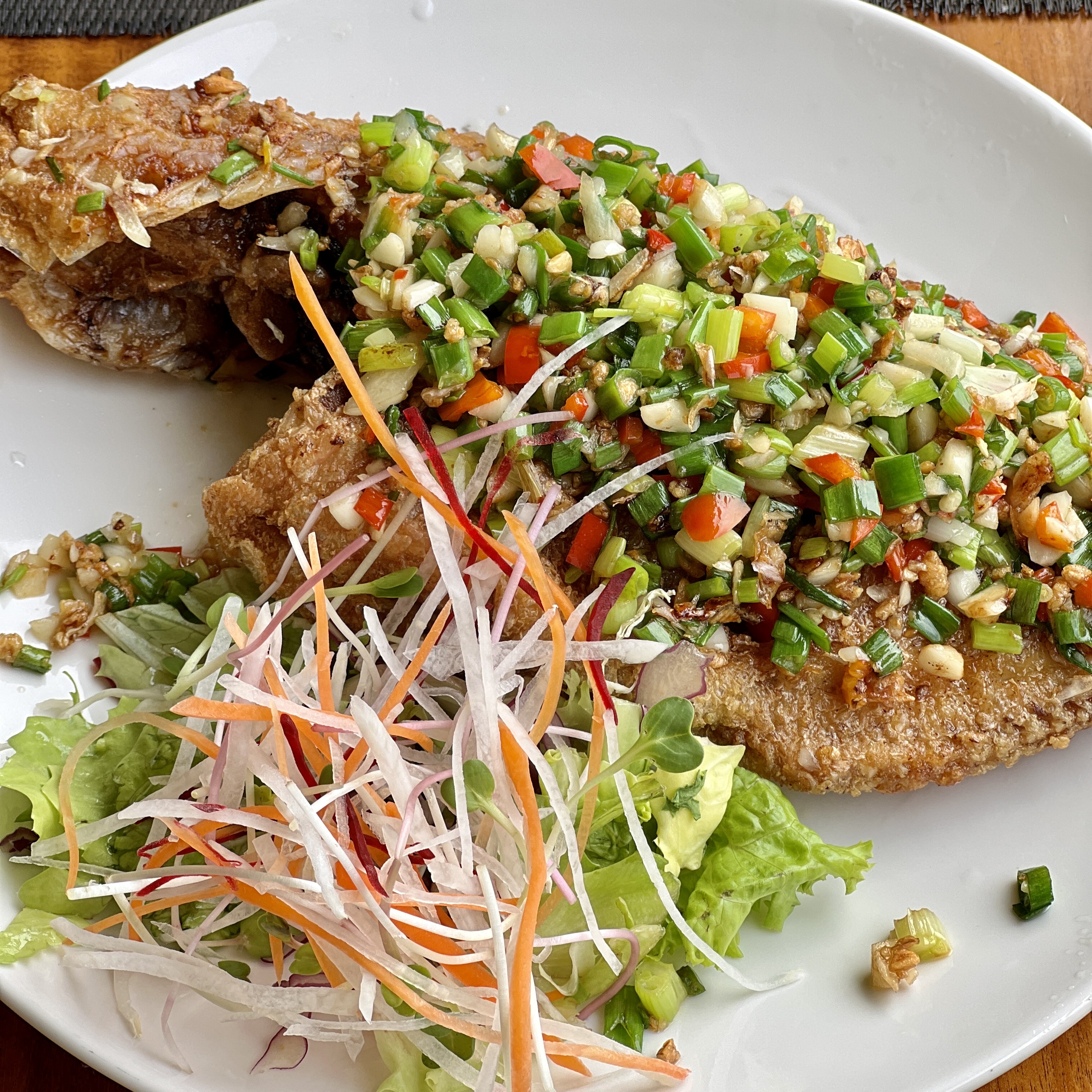 츄온츄온에서 나와서 소화도 시킬 겸 걸어서 Xinchao까지 가기로 했다. 생각보다 햇살이 따갑지 않아서 겉옷 얇은 거 하나 있으면 땀 많이 흘리지 않고 다닐 수 있다. 인도가 잘되어 있는 편은 아니지만, 그래도 다닐만하다. 식당에 방문 후 가장 인상 깊었던 생선구이와 메뉴를 시켰는데... 그때 저녁에는 엄청 보들보들하고 양념도 맛있었는데, 요번엔 두 번째라 그런가 생선이 좀 많이 튀겨진 느낌이고(한번 더 튀긴 느낌?) 딱딱하다 보니 그 맛이 느껴지질 않더라 ㅠㅠ 좋은 추억이 하나 날아가는 것인가. 그리고 창가를 줘서 처음엔 좋았는데 좀 먹다 보니 엄청 덥더라... (가격 314,450동, 이제 현금은 거의 다 털었다)