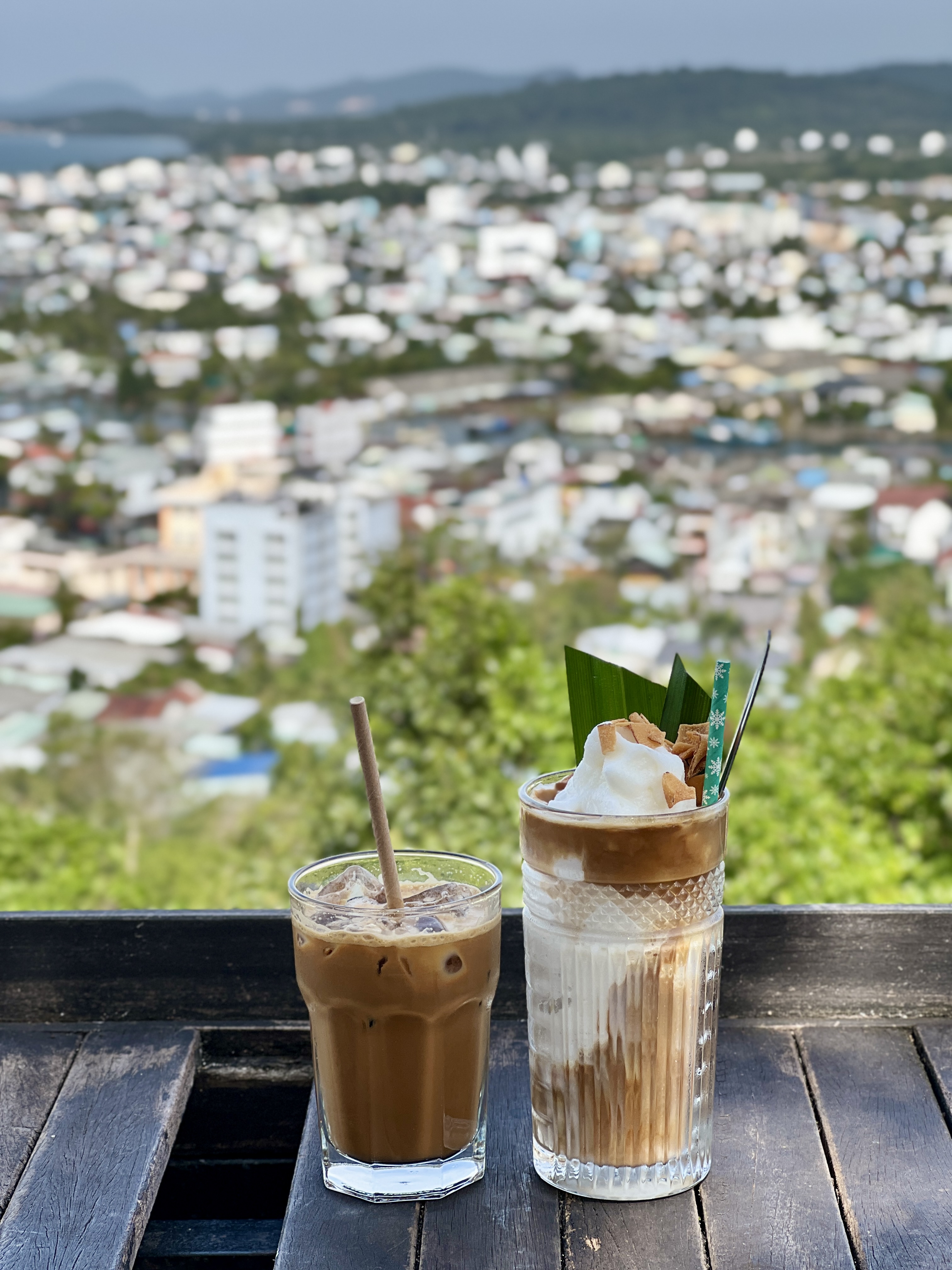 원래 카페를 자주 다니는 편인데 요번엔 한 번도 못 갔다. 그래서 찾아놨었던 츄온츄온카페로 바로 고!, 푸꾸옥 이름 모를 산의 꼭대기쯤에 있다 보니 뷰가 뻥 뚫린 게 장점이고, 현지인들도 많이 있었다. 커피는 여전히 스어다를 시켰는데 달고 쓰다 ㅠㅠ. 올 때는 웬만하면 그랩등을 이용하는 게 좋다. 오르막길이 조금 있다.