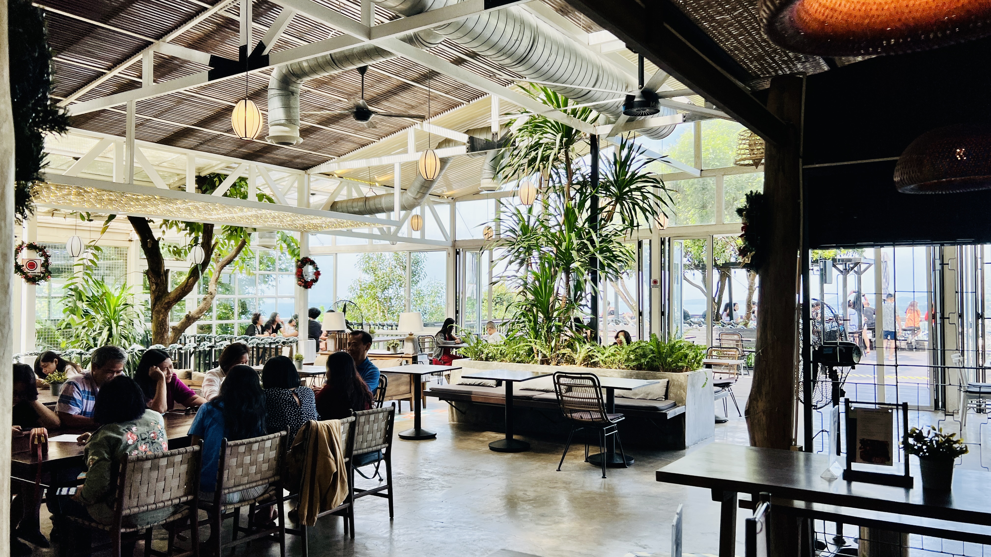 건물 내부가 있고 외부 테라스 같은게 있다. 사람들이 꽤 많다.