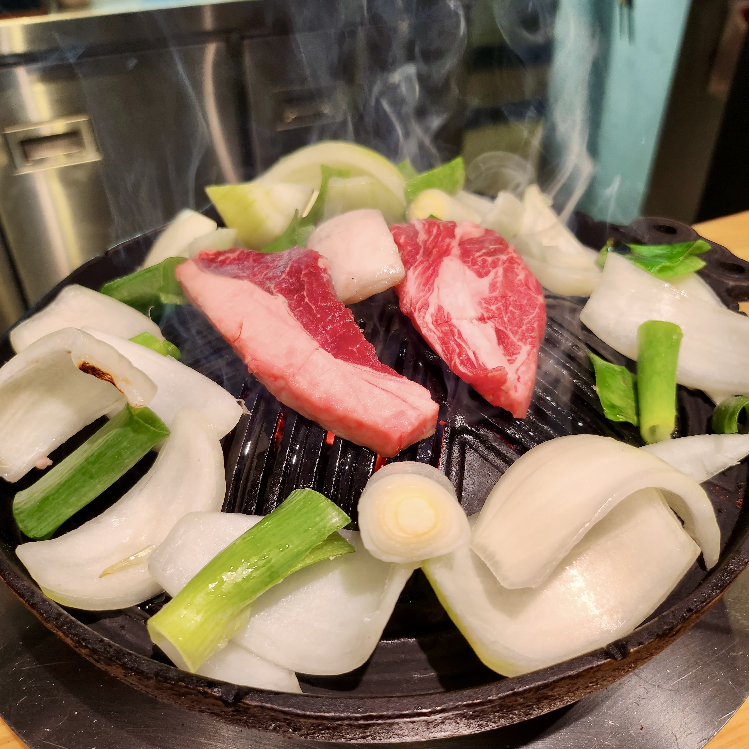 가격은 엔저라서 다행이지 여전히 조금 먹다보면 금방 5만원은 훌쩍 넘어갑니다. 또 냄새가 안빠지다 보니 맥주를 먹게 되는데 은근히 잘 넘어가는 바람에... 여하튼 정신차려보면 금방 먹어치우고 또한 같이 나오는 밥이 정말 맛있습니다. 다만 아쉬운건 야채가 맨날 전 다 태워서, 먹기가 바쁩니다. 불도 엄청 세기도 하고... 여하튼 만족!