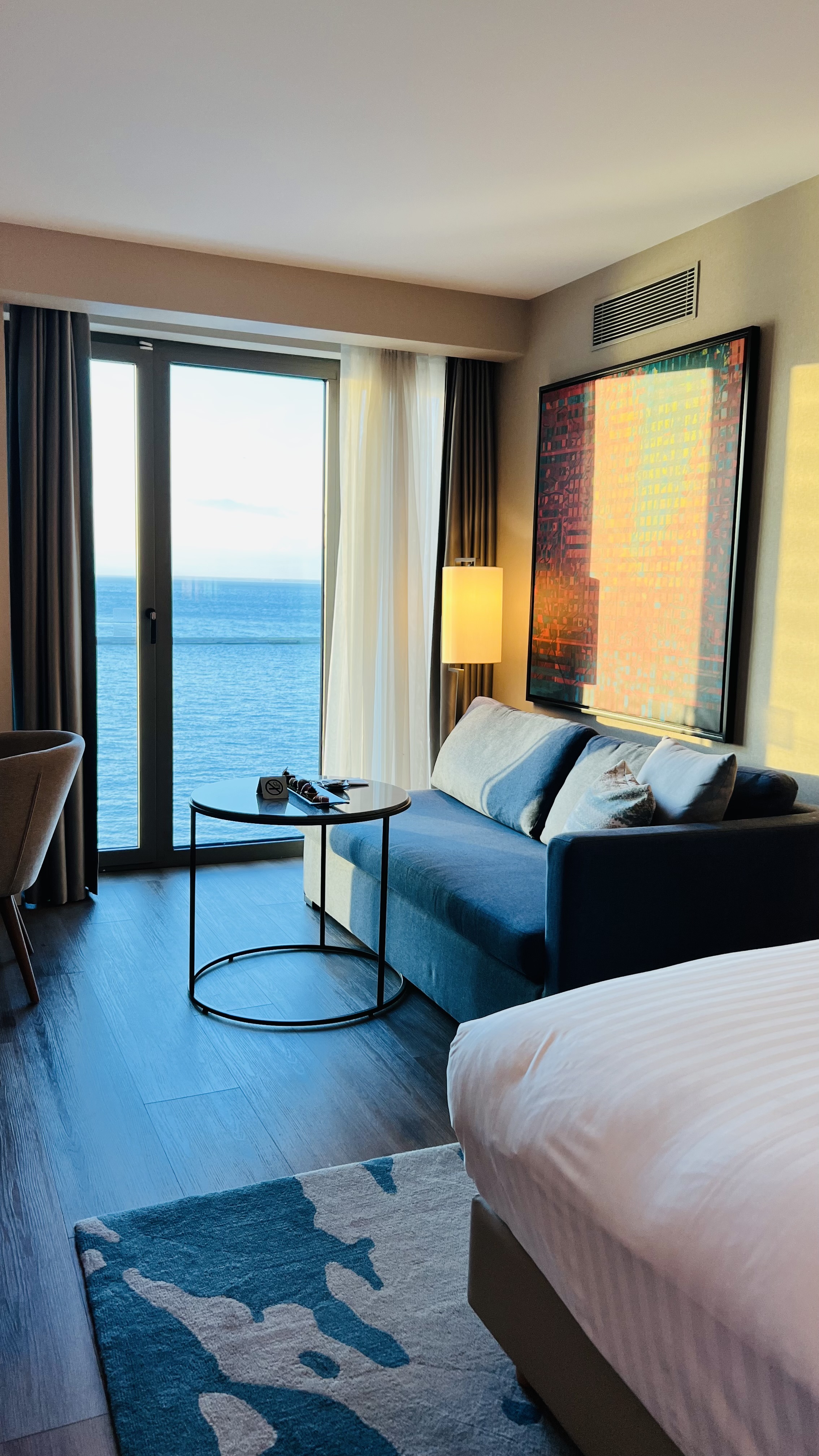 근래에 갔던 메리어트 호텔중에선 제일 좋았다. 직장 동료 한분과 방을 같이 썼고 제일 높은 층의 방을 배정받았는데 바다가 너무나 잘 보이는 멋진 곳이었다. 가격은 생각보다 저렴했다. 그리고 숙박 보너스 기간에 걸려서 추가로 보너스 숙박 포인트를 쌓았다!