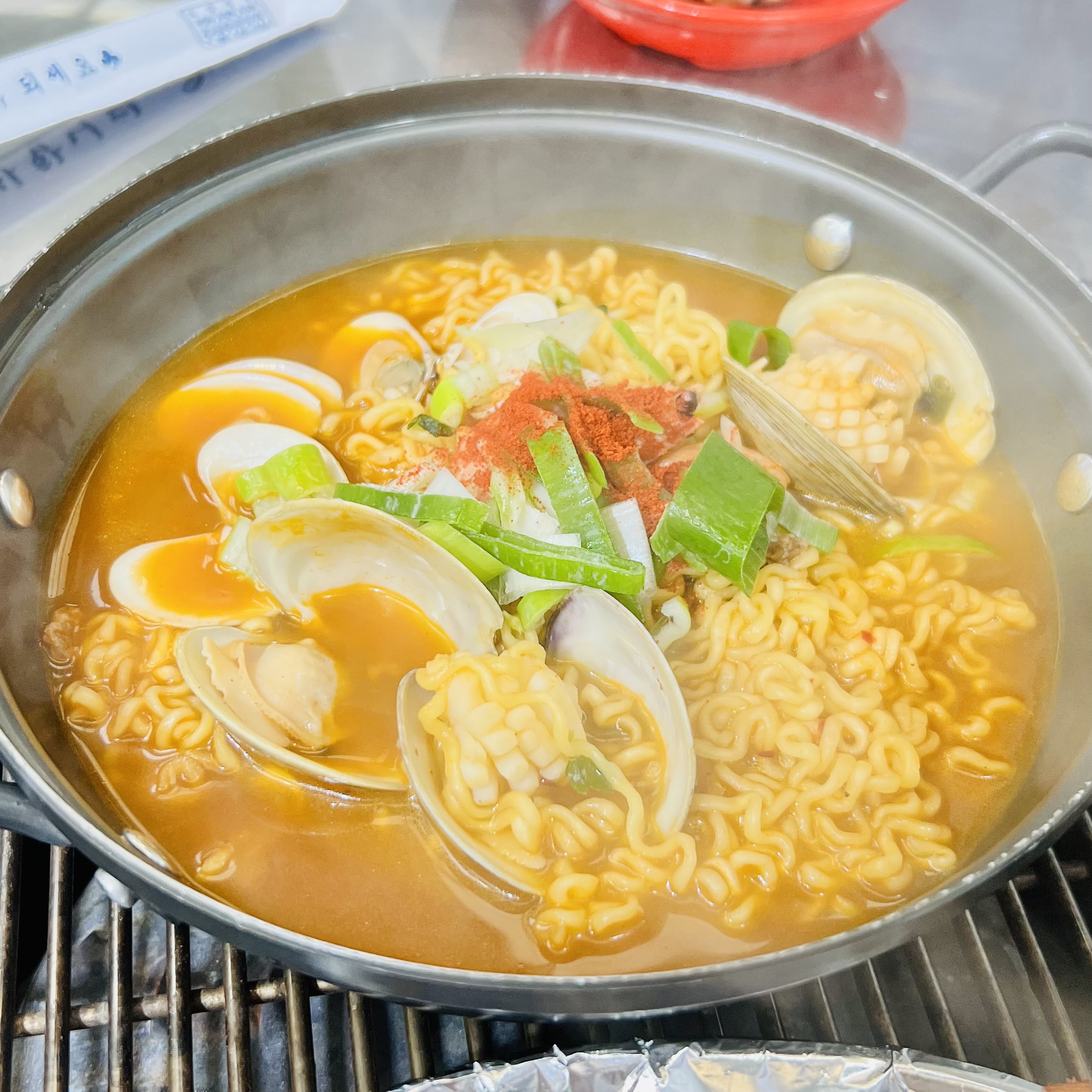 누룽지 오징어 순대라고 해서 크게 다르진 않고, 좀더 눅눅하고 타게 했습니다. 근데 이게 또 맛은 좋네요 ㅎㅎ. 이거 먹기 위해 11시 20분에 도착했는데 대기로... 실제 먹은 시간은 12시 반에 먹었습니다!! 요거랑 해물라면 좋았습니다.