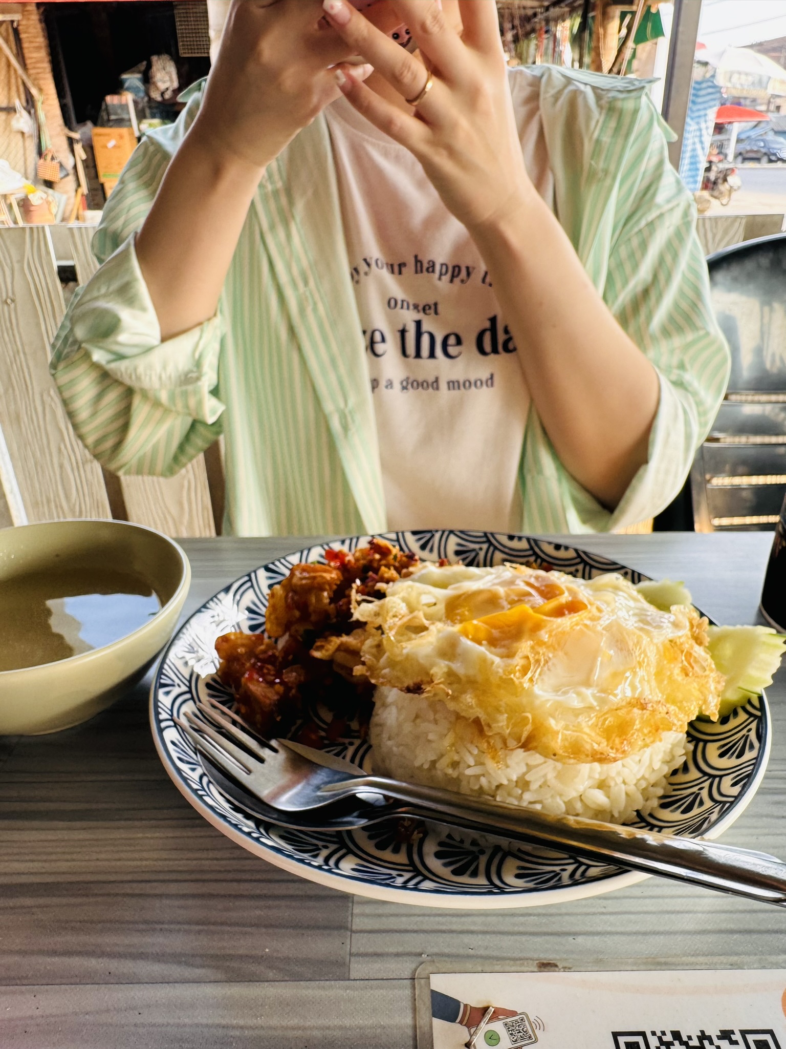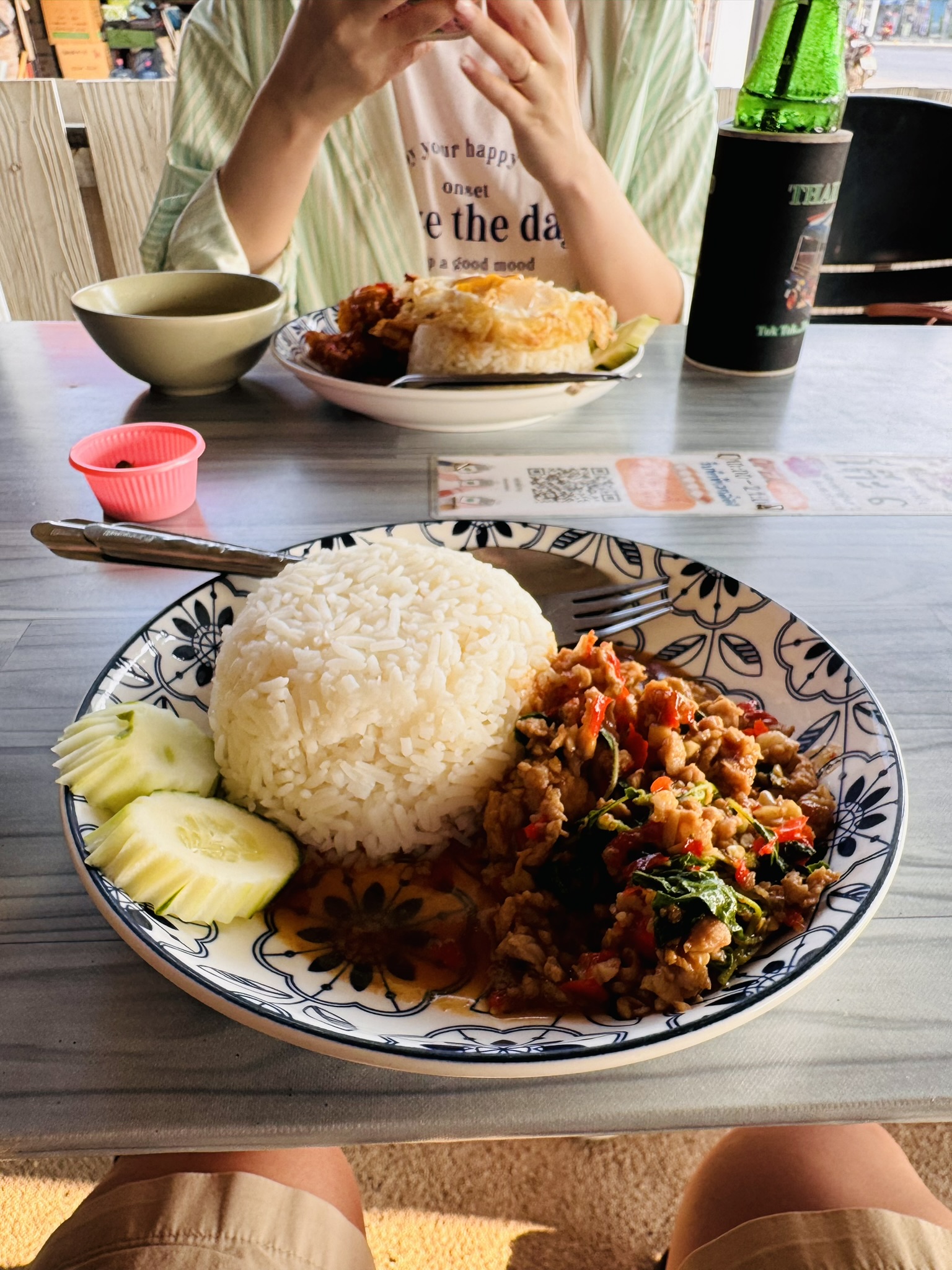 가성비 찐 맛집입니다. 바질 고기 볶음밥을 먹으러 갔고, 크리스피 스파이시 돼지고기를 먹으러 갔는데, 처음으로 맵기를 물어보셨고, 스파이시를 했다가 땀과 함께 맛있게 먹었습니다. 여기도 실 외 식당이라 덥고, 16시는 넘어가야 그나마 좀 날씨가 풀릴 기미가 보입니다. 중간중간 현지인들도 많이 오십니다.