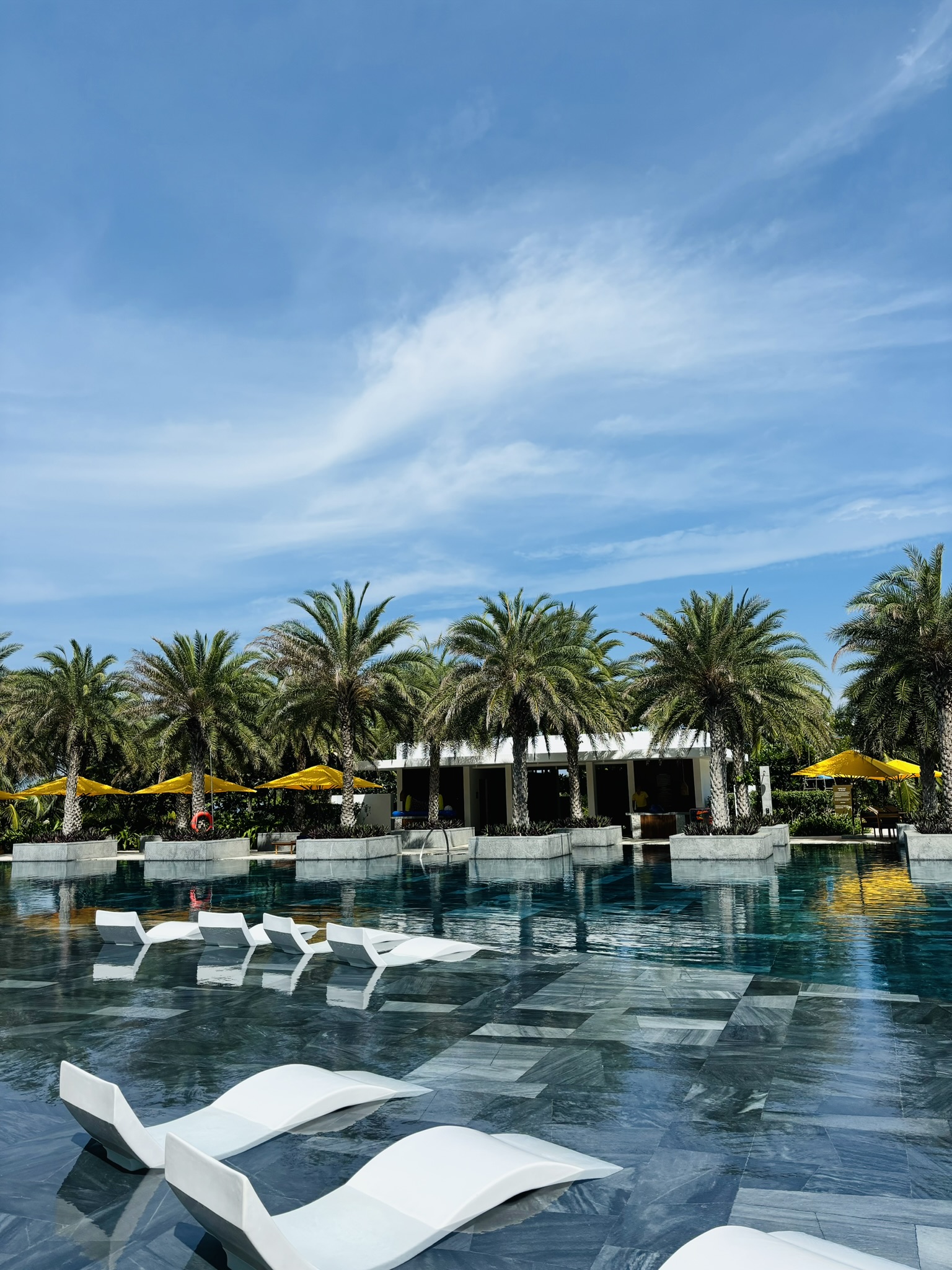 단점1. 수영장이 너무 땡볕이다. 오전 10시까지 야자수 그늘에서 놀고, 오후 5시이후부터 폐장시까지 놀 수 있다.
