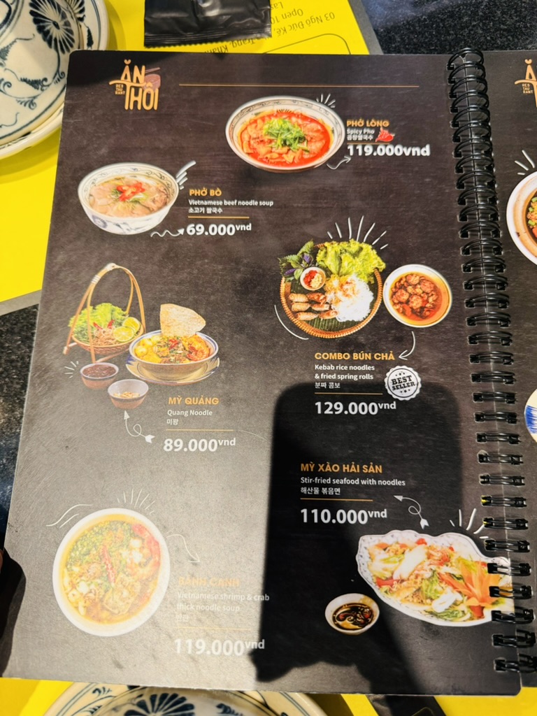 맛은 소소, 가격은 비쌉니다! 분짜가 제일 맛있어요. 반쎄오는 그닥. 베나자 카드는 바로 앞에 발급받을 수 있습니다.