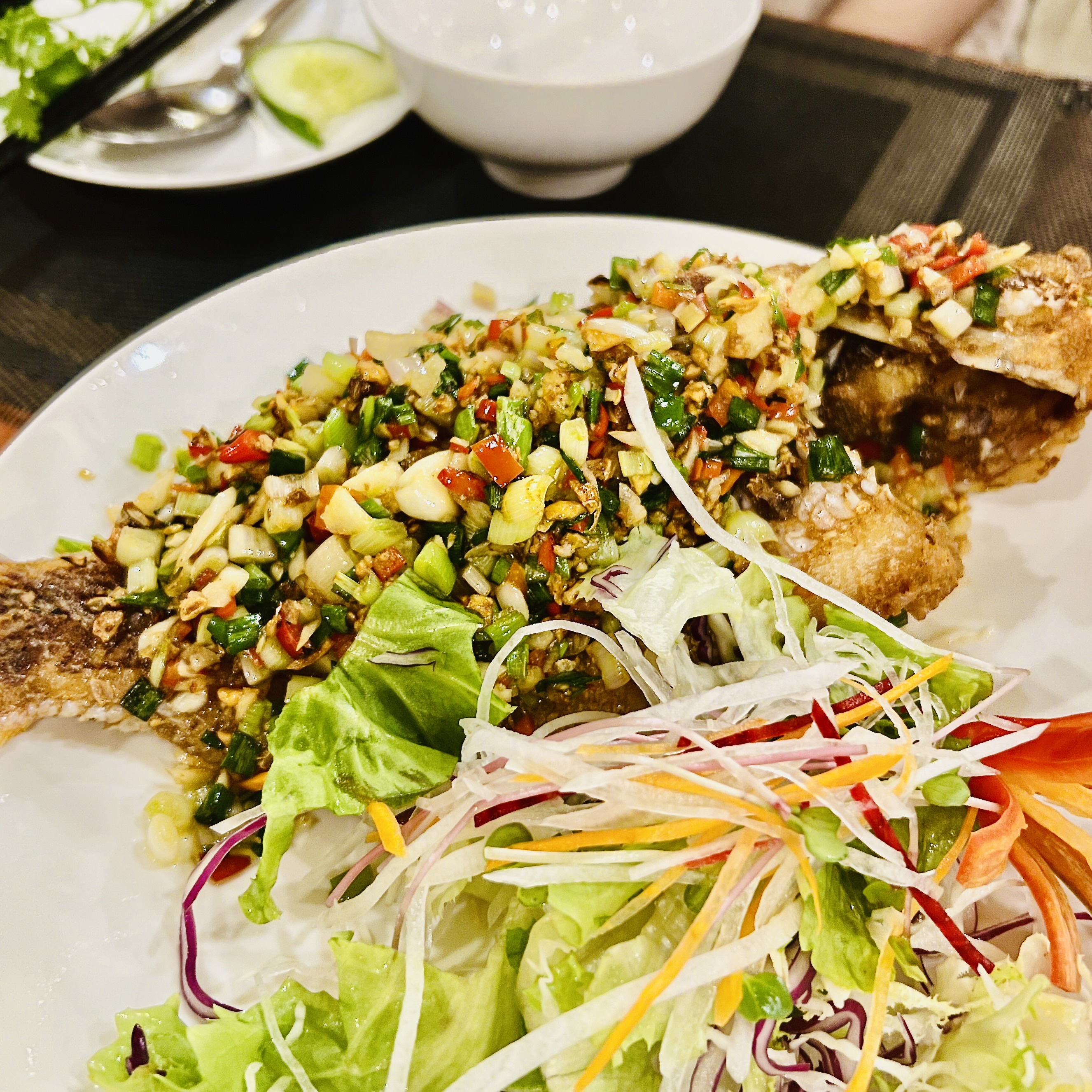 마사지까지 받으니 배가 고프더라. 리조트로 일단 그랩타고 복귀하고, 도보로 5분도 안 되는 거리에 있는 바나나 가든을 갔다. 현지 식당이고 실외에서 먹으면서 구석에 있다. 요리는 나쁘지 않았다. 오징어튀김은 리조트가 더 좋다. (가격은 63만 2 천동 약 3만 4천 원)