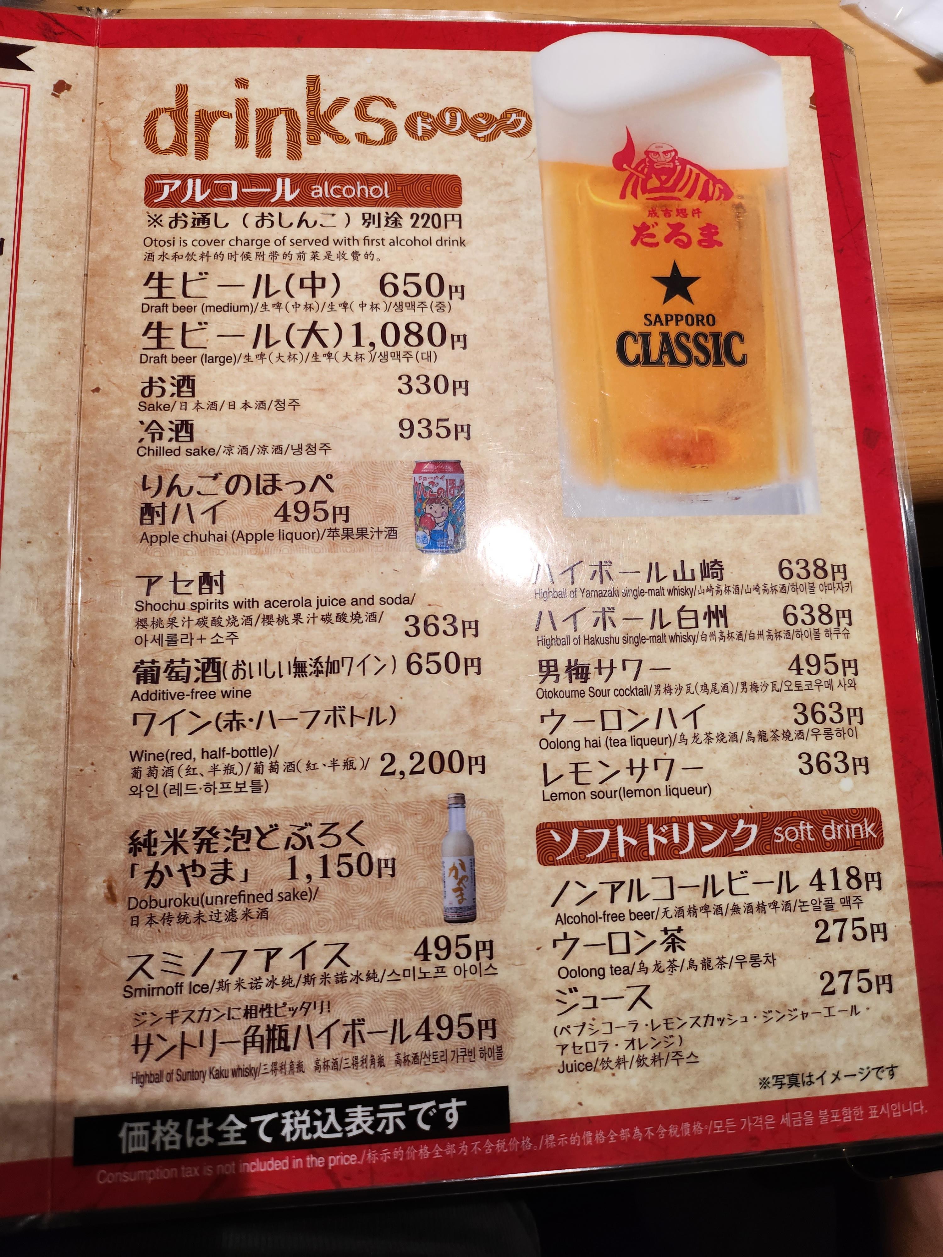 징기스칸을 파는곳은 많지만 예전에 다루마에서 좋은 기억이 있어서 요번엔 6.4점으로 갔습니다.