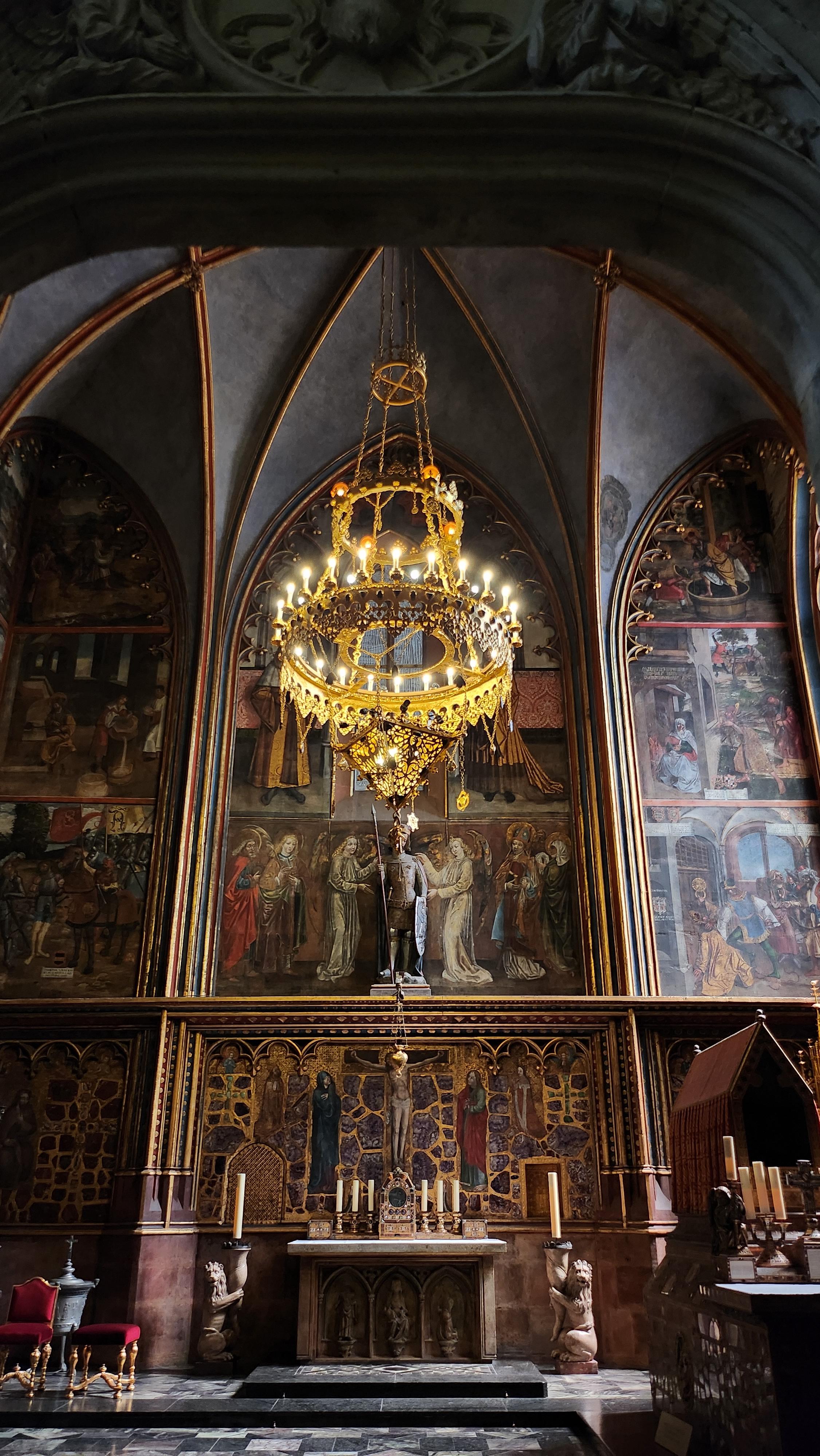 프라하 성 내부를 들어갔습니다. 가이드분께서 열심히 설명을 해주셨으나 일년이 지난 지금은 까먹었네요 ㅎㅎ 성내부 벽화에 압도당했었는데 다양한 설명은 들었었지만... 기억이 잘 나지 않네요 ㅠㅠ. 가장 마지막에 봤던 저 아름다운 색상감이 넘치는 유리창이 점점 색소가 빠져가고 있는건 기억하였습니다! 스페인과 함께 시간지나기전에 한번 더 와야하는 곳이에요!